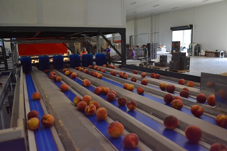 Processing line for peaches with capacity 12 t per hour.The line is specialy designed for the proper processing of the peaches.