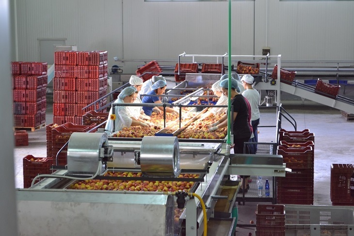Processing line for peaches with capacity 12 t per hour.The line is specialy designed for the proper processing of the peaches.