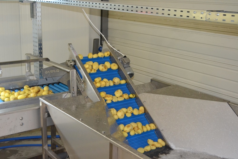 Processing line for peeled potatotes with capacity 800 kg per hour.The line is specialy designed for the proper processing of the peeled potatoes.