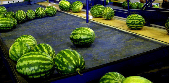 Processing line capacity 12 t per hour for watermelon.The line is specialy designed for the proper processing of the waterelons.